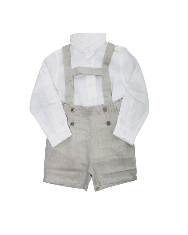 Lascia che il tuo bimbo si senta coraggioso e pronto ad affrontare qualsiasi sfida con il Dottor Kids Completo Cerimonia dk1401 Con Bretelle! Realizzato in misto lino, questo completo 2 pezzi è composto da un pantaloncino con bretelle e bottoncini finto legno sul davanti, abbinato alla camicia con collo coreana e manica lunga. Aggiungi un tocco di avventura al suo guardaroba con questo completo elegante e confortevole!