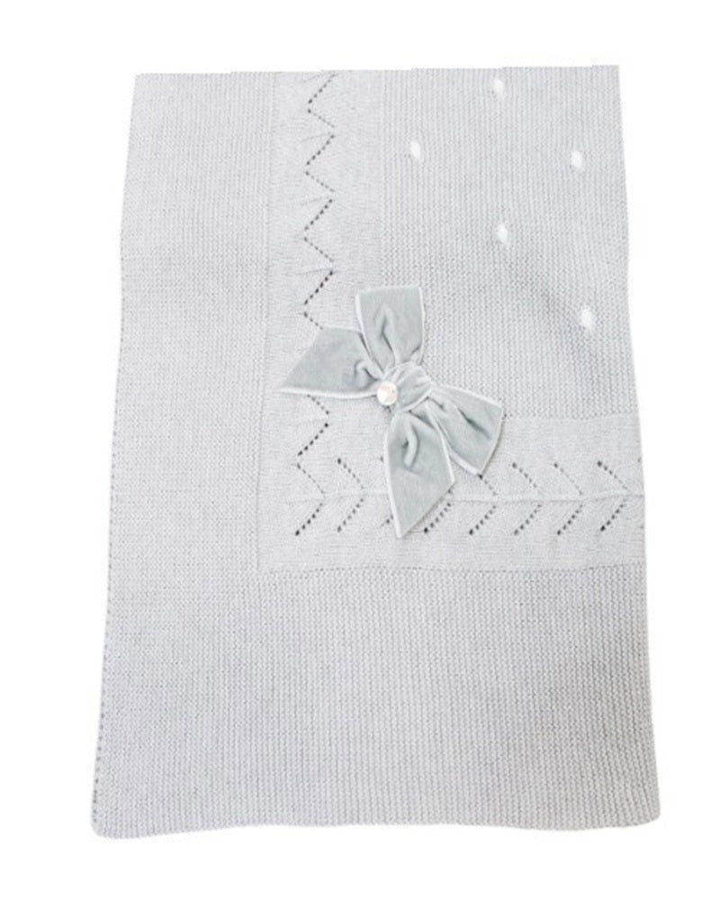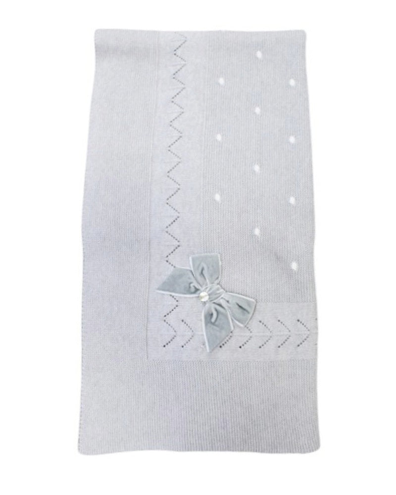 This Dottor Kids wool blend blanket is perfect for keeping your baby warm and comfortable. The wool knots and velvet bow add a touch of style, while the contrasting color makes it even prettier. Combined with the dk196 romper, it is ideal for a perfect dressing of your little one.