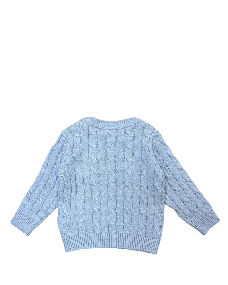 Maglia girocollo a maniche lunghe con lavorazione a trecce, 6 mesi - 24 mesi chiusura con bottoncini sulla spallina, finiture a costine.