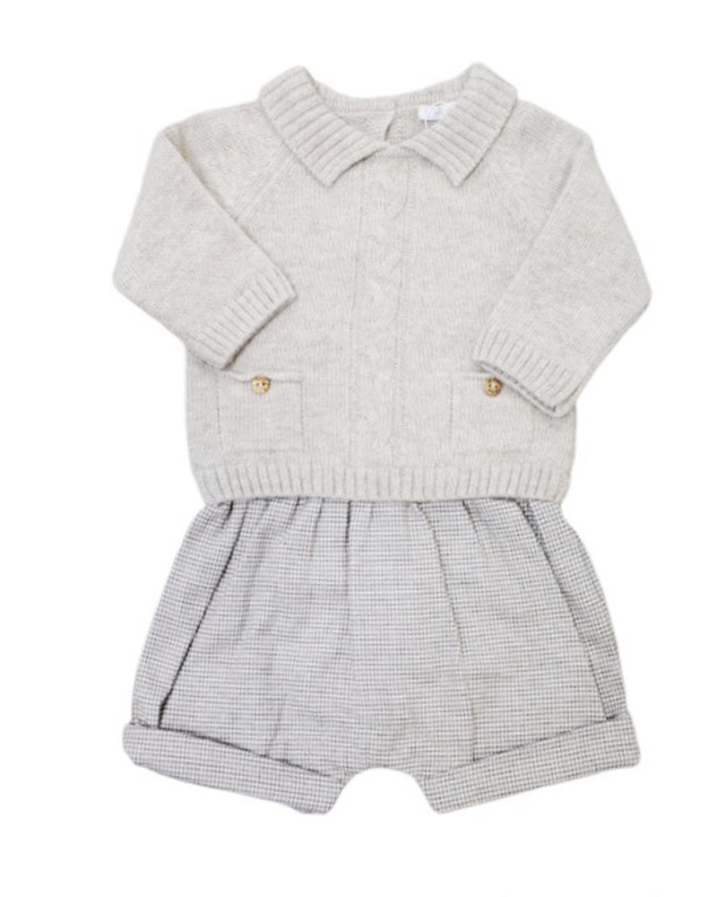 This wool bodice romper gives an elegant look to babies and offers maximum comfort thanks to the checked fabric underneath. The pockets on the front, although fake, add a touch of style and the blanket art dk165 matches it perfectly. A must-have for little fashionistas.