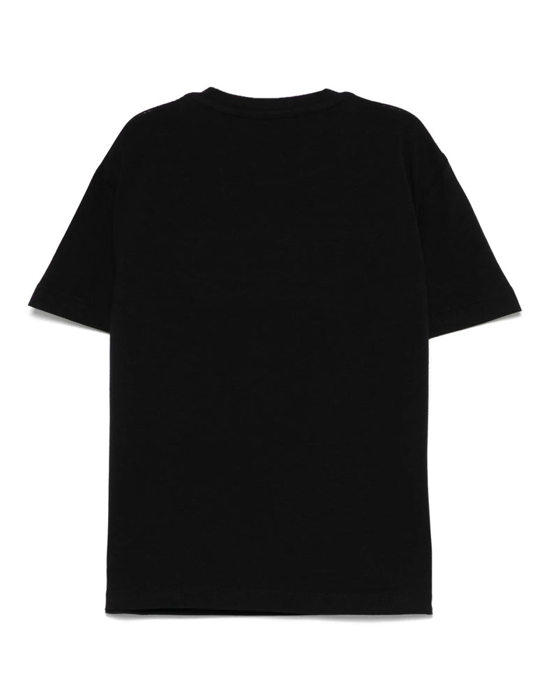 T-shirt in cotone di Elisabetta Franchi La Mia Bambina. Presenta collo tondo, maniche corte, simbolo del brand applicato con strass sul davanti.