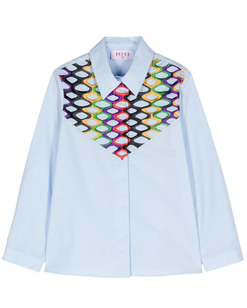Emilio Pucci Camicia azzurra in popeline con ricamo PV5A40-P0013