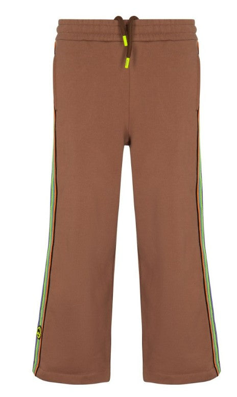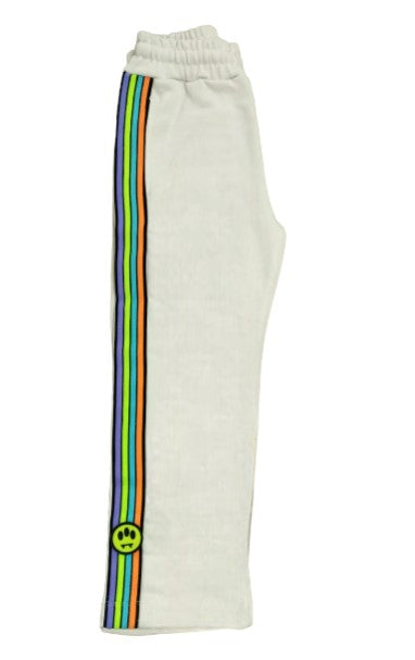 Straight leg trousers in cotton fleece, elasticated waist and drawstring, multicoloured side bands, logo printed on the front.