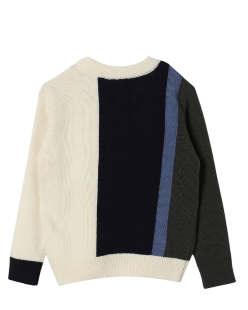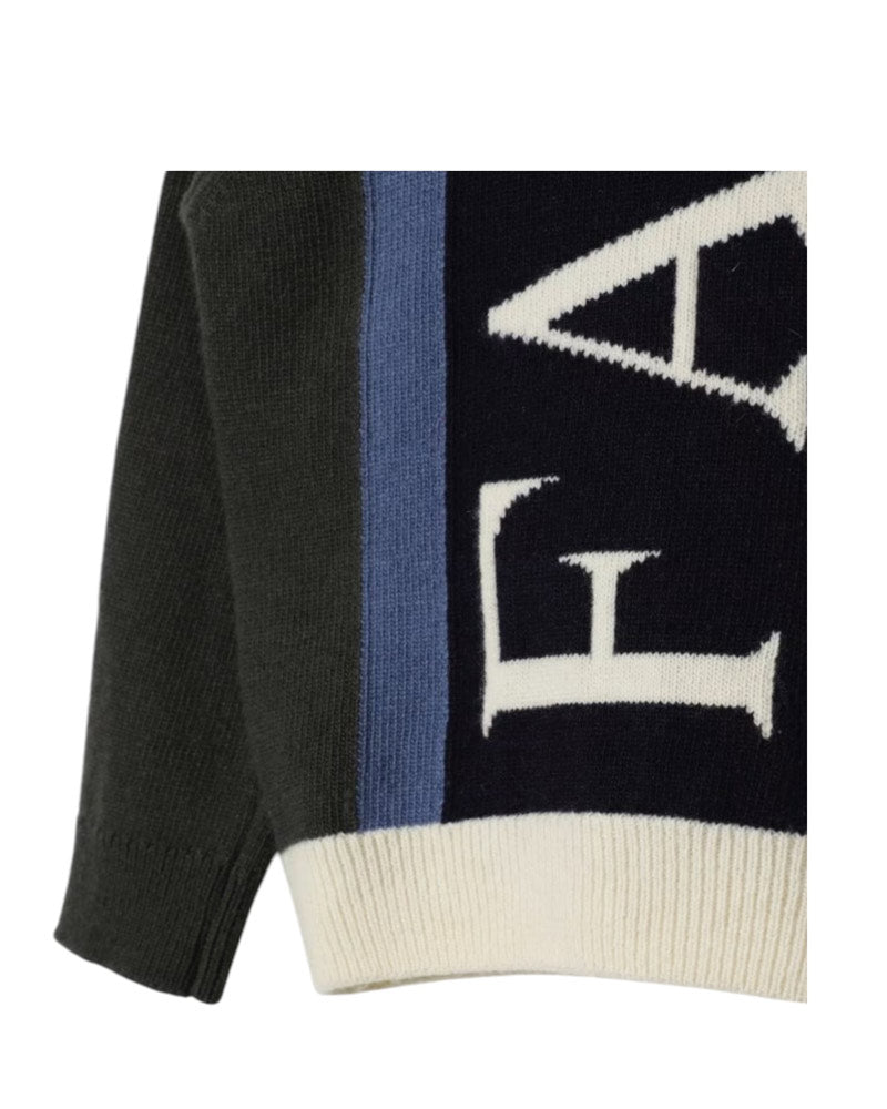 Maglia realizzata in misto lana e cashmere da bambino. Presenta collo tondo, maniche lunghe, logo ad intarsio sul davanti e finiture a coste.