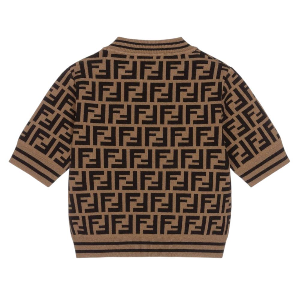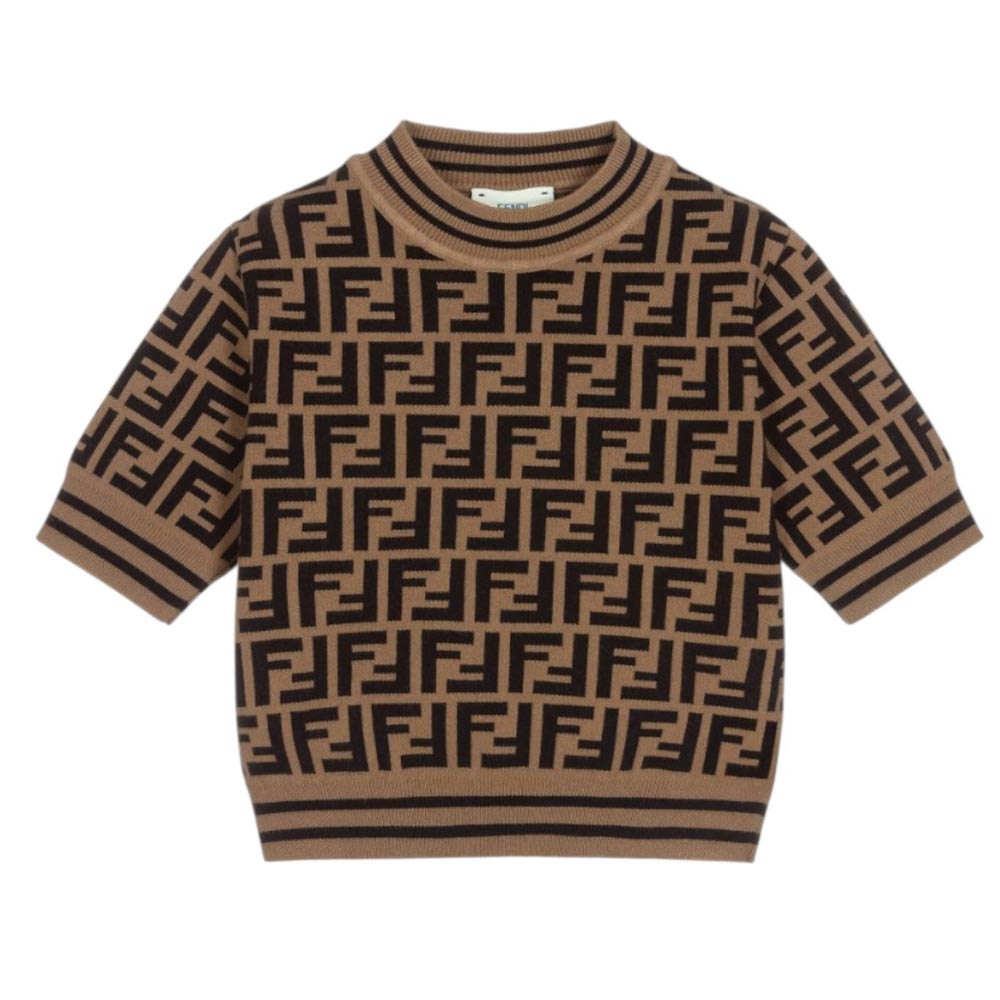 T-shirt realizzata in maglia, con motivo FF color tabacco. Presenta collo rotondo, maniche corte, bordi a costine e vestibilità attillata.