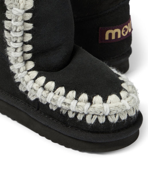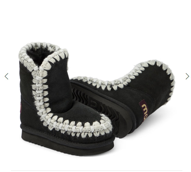 Eskimo overstiting Boot Mou. Model in beautiful and warm double-face sheepskin, with white and grey crocheted wool stitching, reinforced heel and a resistant EVA and rubber outer sole.