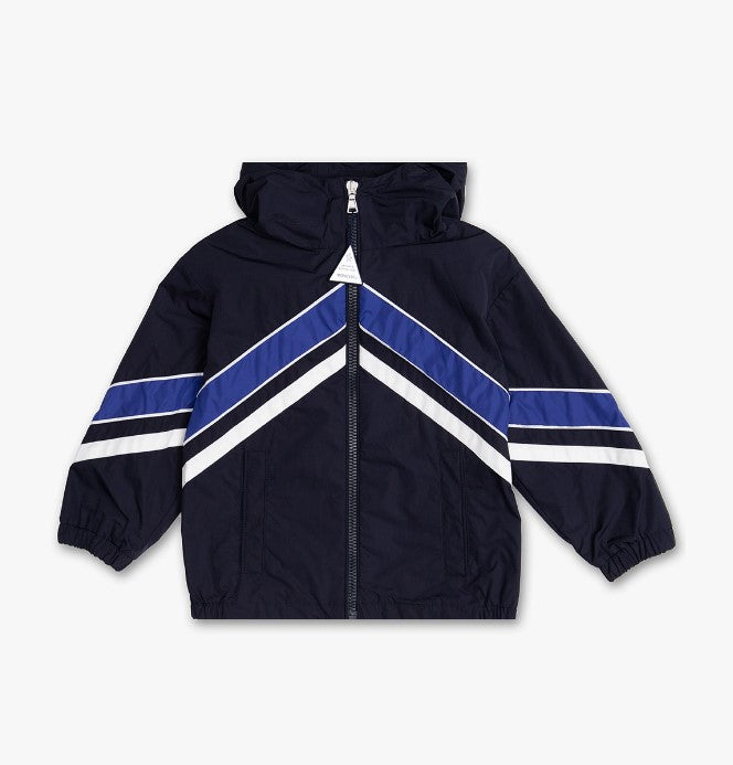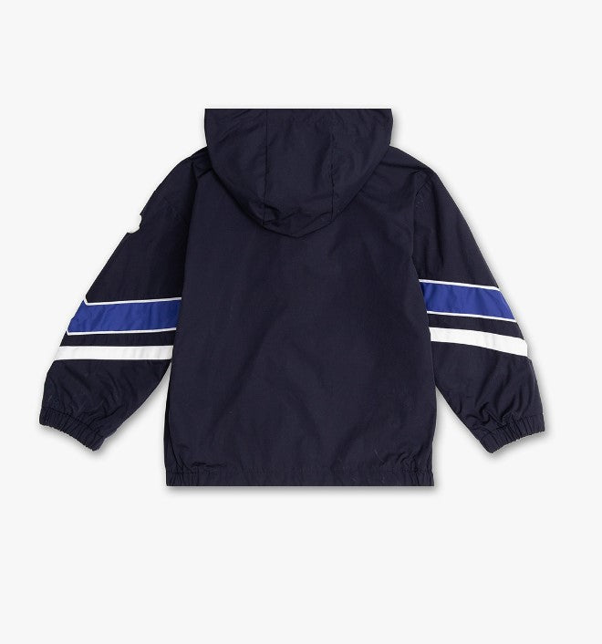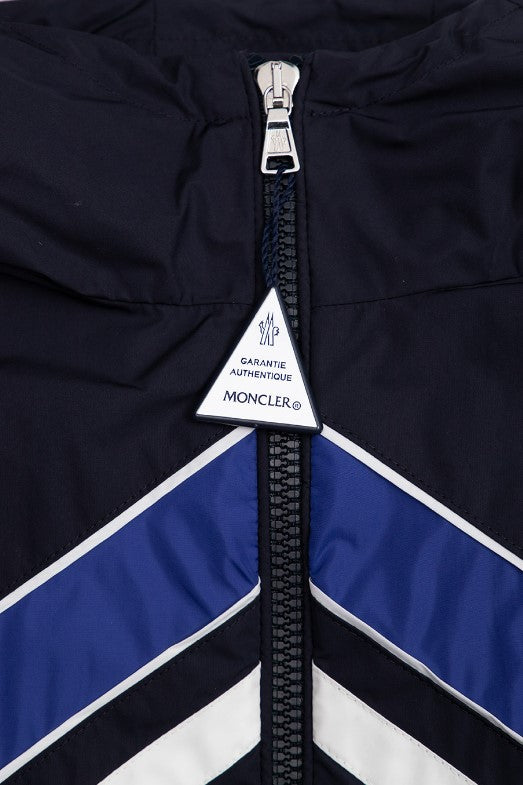 Nylon jacket with hood, front zip fastening, America pocket, logo patch applied on the sleeve.
