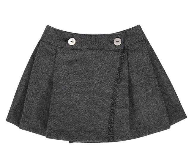 Wrap mini skirt in wool blend, with pleats on the front and two buttons on the waistband, flared cut.