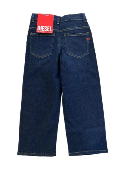 Cotton denim jeans, five-pocket style, straight leg, front fastening with button and zip.