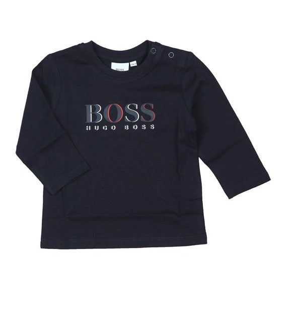 Crew neck, long sleeve T-shirt with logo applied on the front. Snap button closure on the shoulder.