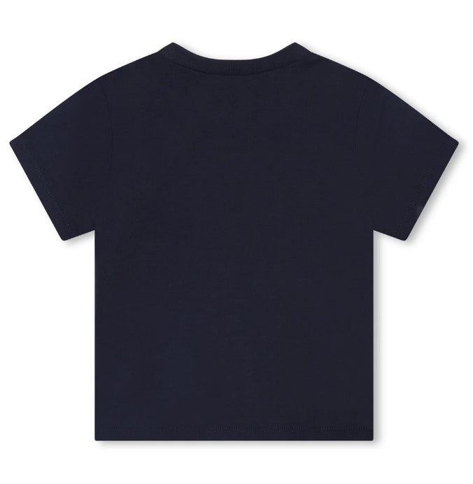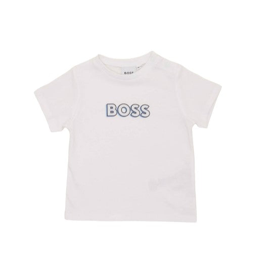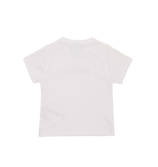 Crew neck, short sleeve T-shirt, logo print on the front, fastening clips on the shoulder.