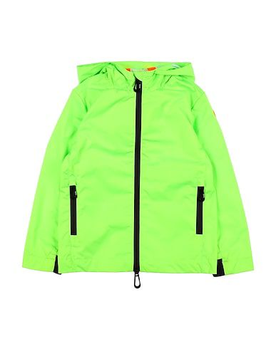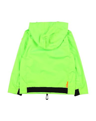 Nylon jacket with hood, front zip fastening, side zip pockets, logo applied on the sleeve.