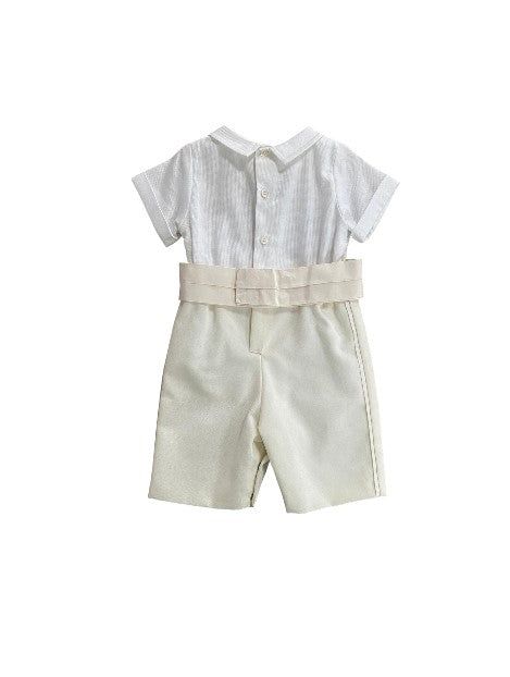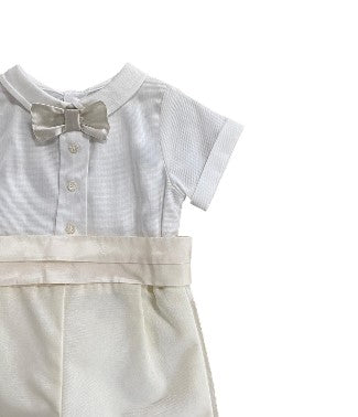 La Stupenderia fake two-piece romper with special bow tie sewn with gold details.