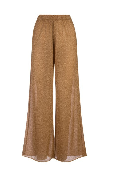 Girls' trousers made of lurex fabric, feature a straight cut, flared design and elasticated waist.