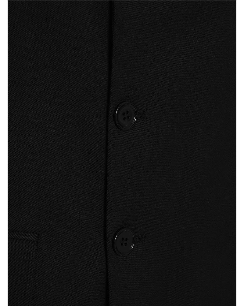 Giacca monopetto nera realizzata in fresco di lana. Presenta collo a revers, chiusura frontale con bottoni, maniche lunghe, due tasche con patta sul davanti e orlo a taglio vivo. È decorata con ricamo Numeric logo tone on tone sul petto.