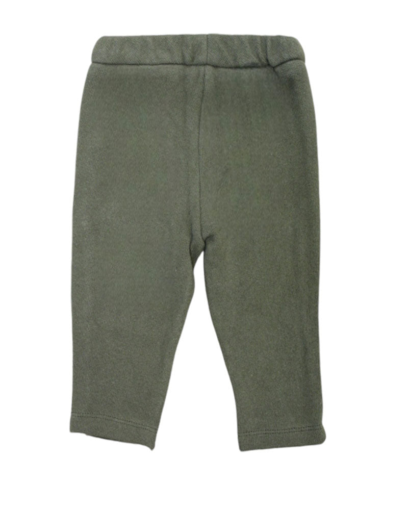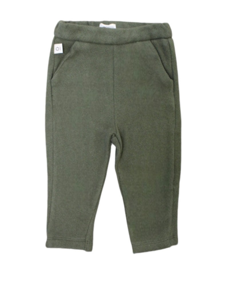 Soft wool trousers, elasticated waist, side American pockets, applied logo patch.