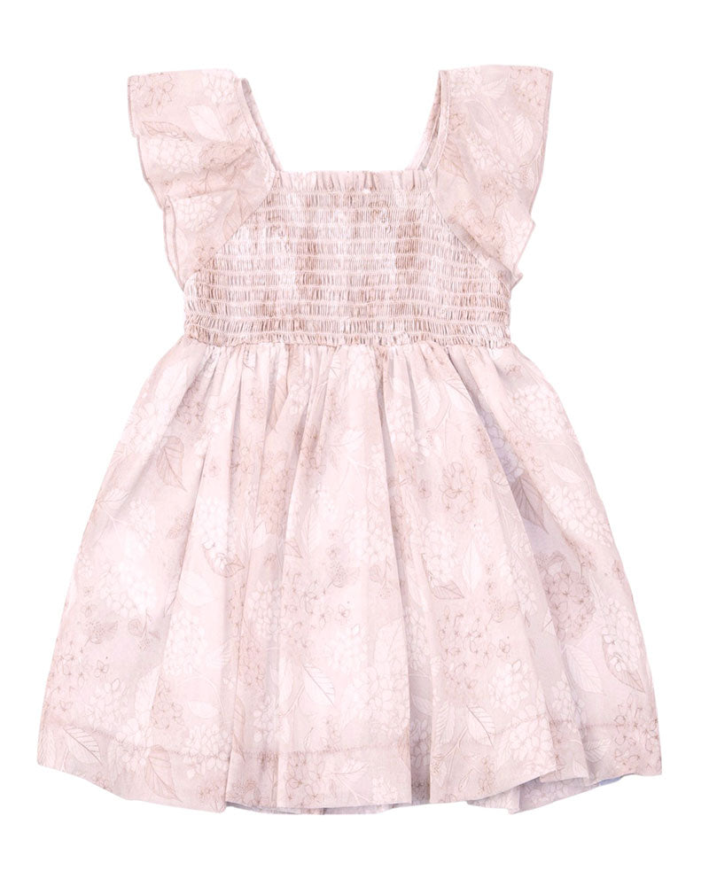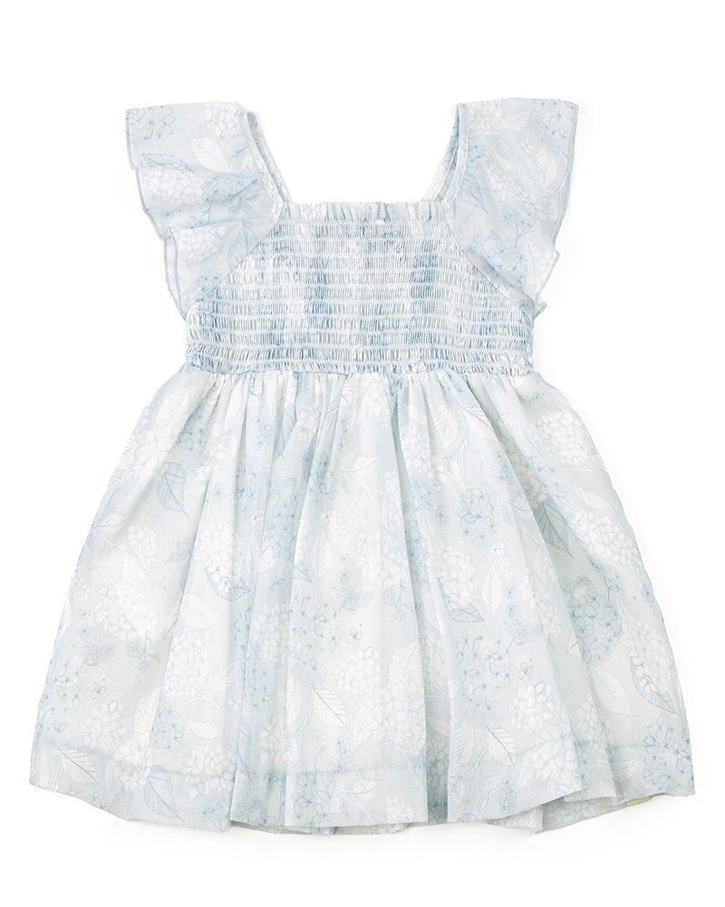 Vestina realizzata in battista di cotone, romantica fantasia floreale, manica con ruches, bustino elasticizzato, maniche con ruches, gomma ampia.