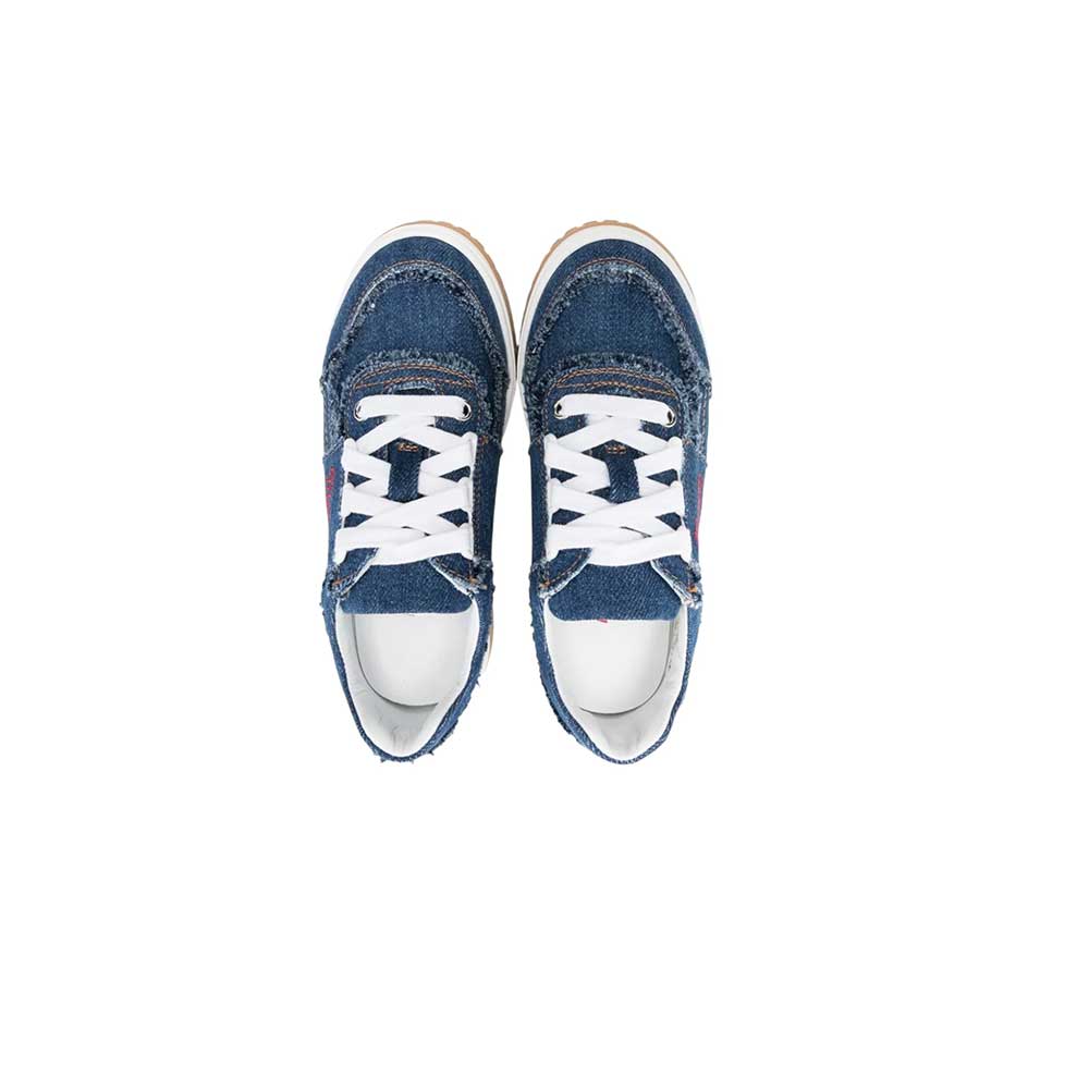 Risveglia il tuo spirito avventuroso con le Marni Sneakers in Denim 76729 Unisex Junior. Il design con inserti e l'effetto délavé le rendono uniche, mentre le cuciture a contrasto e l'orlo sfrangiato aggiungono un tocco di audacia. Il logo ricamato laterale e la punta tonda completano il look. Sbizzarrisci il tuo stile!