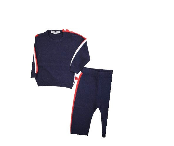 Giorgetti two-piece jumpsuit with red and white stripes.