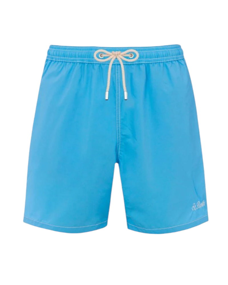 Costume da uomo, modello "SB 34 EMB", comoda vita elasticizzata, cordoncino regolabile con terminali marchiati, fodera interna in rete, tasche laterali con cucitura alla francese, tasca posteriore applicata con chiusura in velcro, occhielli firmati progettati per drenare l'acqua e prevenire l'effetto palloncino, etichetta esclusiva MC2 Saint Barth sul retro, tessuto seersucker ad asciugatura rapida, esclusivo dettaglio logo Saint Barth sul fondo gamba, media lunghezza.