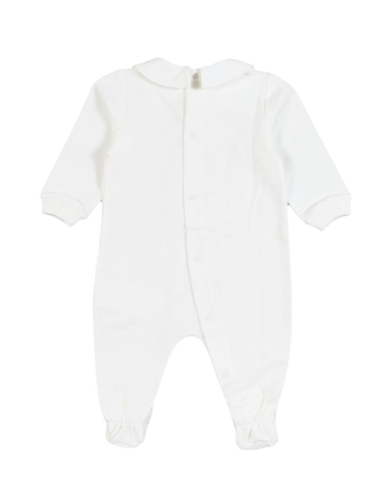 Wrap your little one in pure style with this warm cotton sleepsuit, made from a blend of 95% Cotton and 5% Elastane for unparalleled comfort! The distinctive Teddy Bear motif, enriched with glitter details, adds a touch of sweetness and originality. The contrasting collar and rounded neckline, together with the press stud fastening on the back, make this sleepsuit practical and stylish. The long sleeves, ribbed cuffs and feet complete the look, keeping your little one warm in an elegant way.
