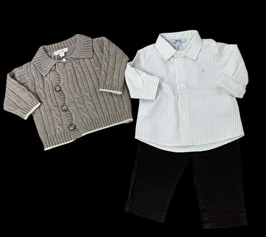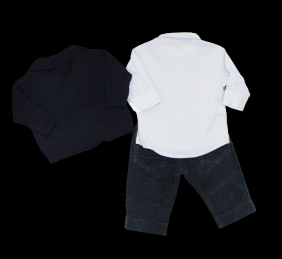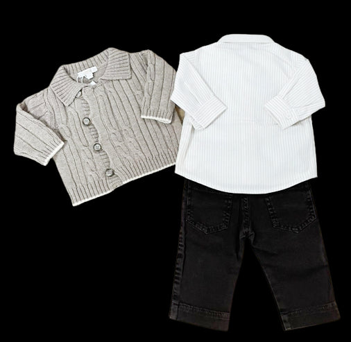 The mrv333943 Aletta 3 Piece Wool Set for Newborns consists of a wool sweater with an opening on the front, a cotton shirt, and jeans-effect trousers. It guarantees softness and comfort for your little one, thanks to the high-quality fabrics. Ideal for keeping your baby warm and fashionable!
