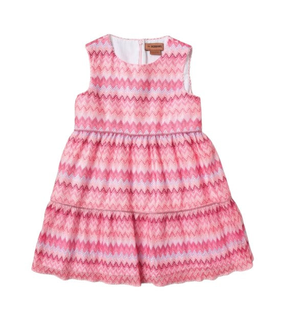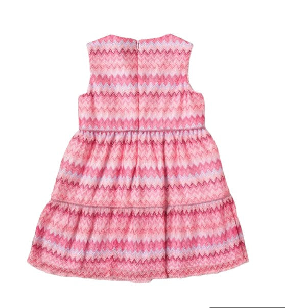 Crew neck dress, armholes, all-over pattern, back zip fastening.