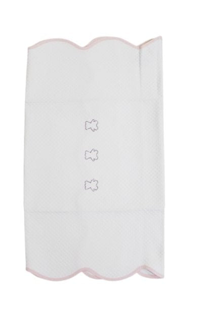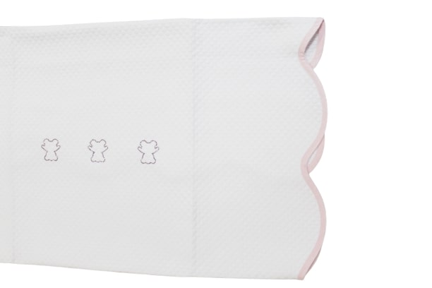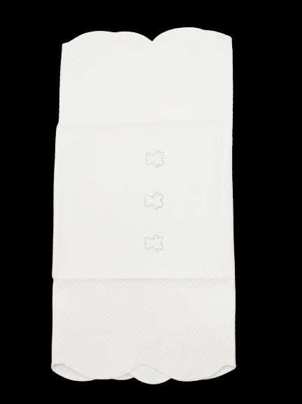 Nadia Amato Baby Blanket in white cotton with central rhinestones. Quilted model with rhinestone bears in the center.
