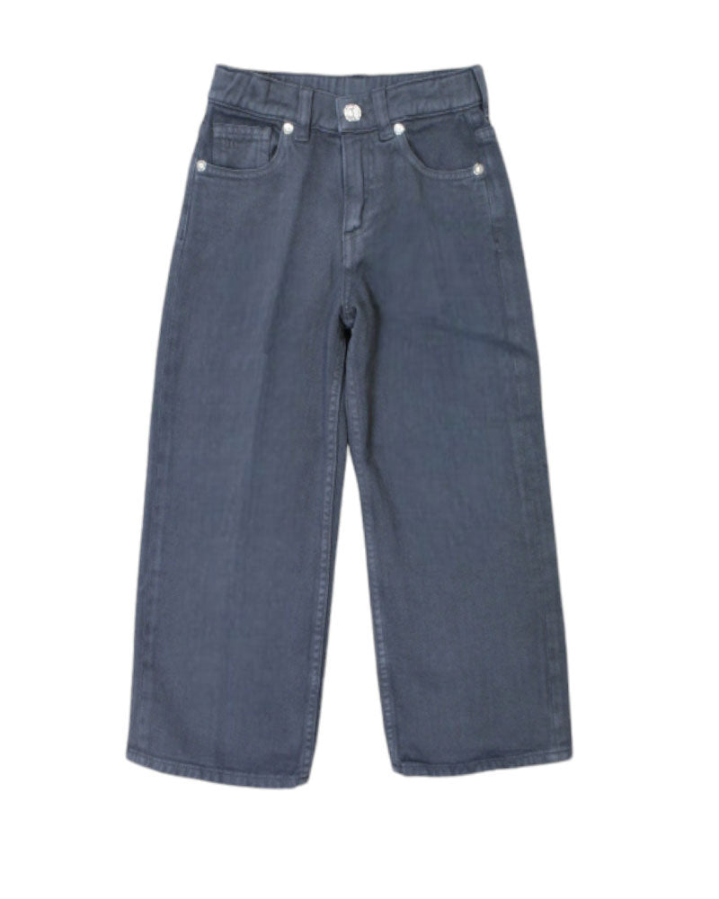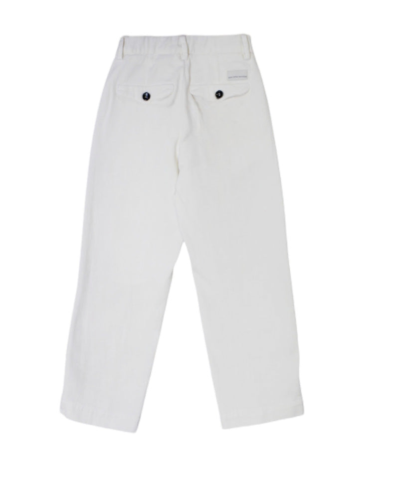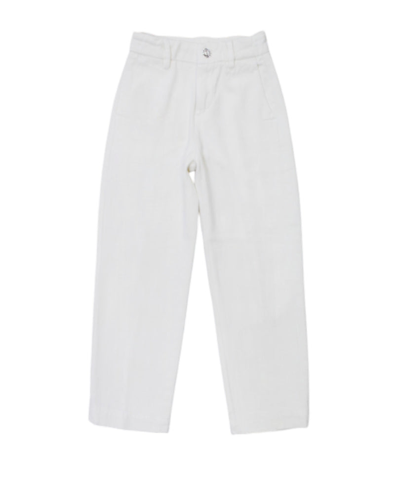 Lightweight denim trousers, American pocket, zip and button fastening, back pockets.