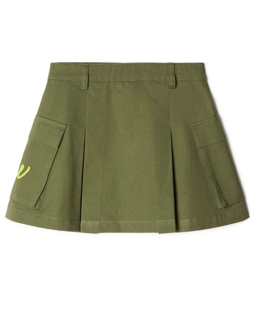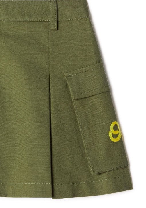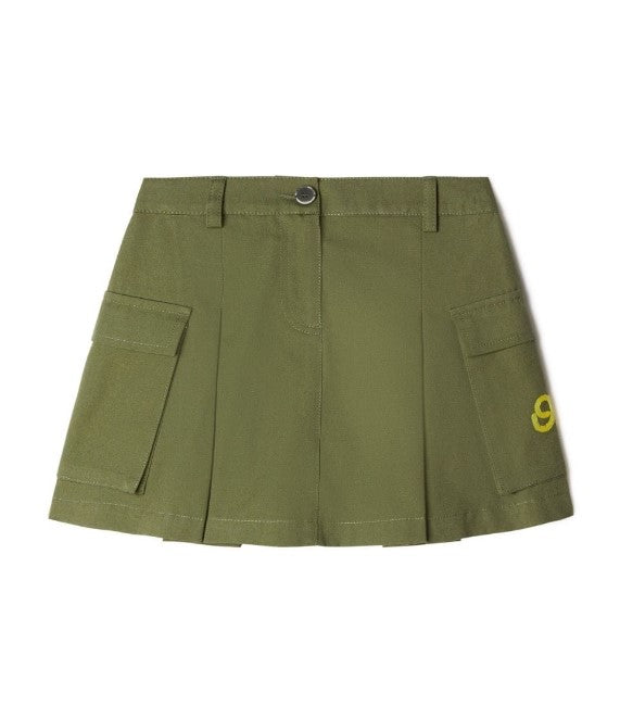 Girls' cotton skirt, front button and zip fastening, patch pockets with embroidered logo.