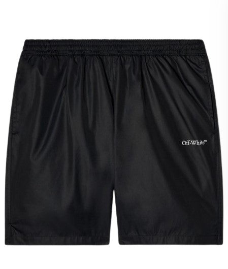 Nylon shorts, elastic waist, welt pockets, logo printed on the front and back.