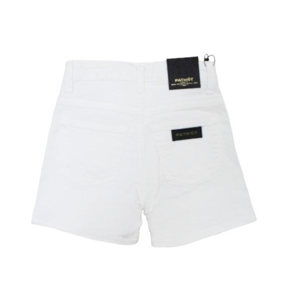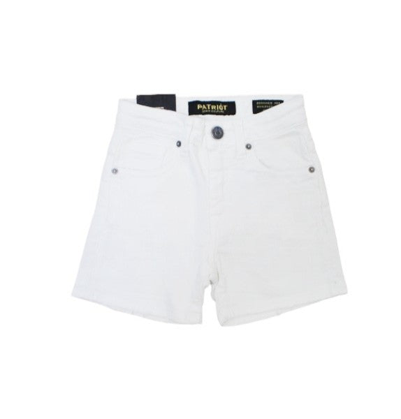Cotton denim Bermuda shorts, five-pocket model. Front closure with button and zip. Logo applied on the back pocket.