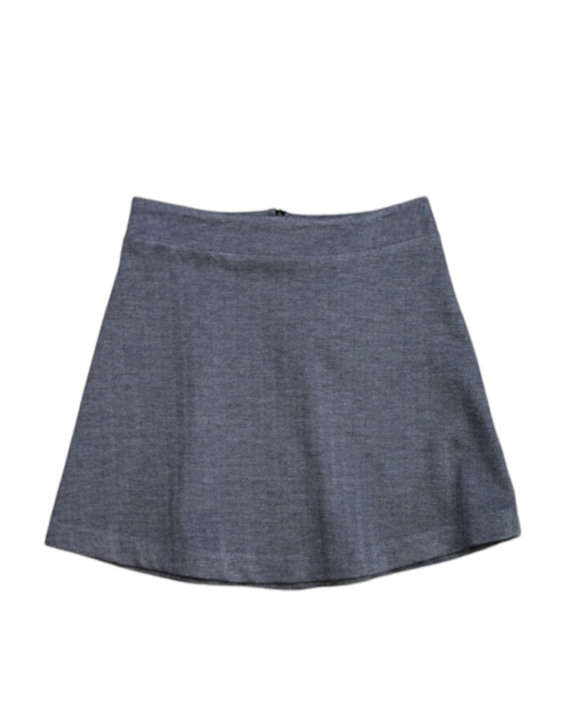 Short, slightly flared skirt in herringbone pattern, with invisible zip fastening on the back.