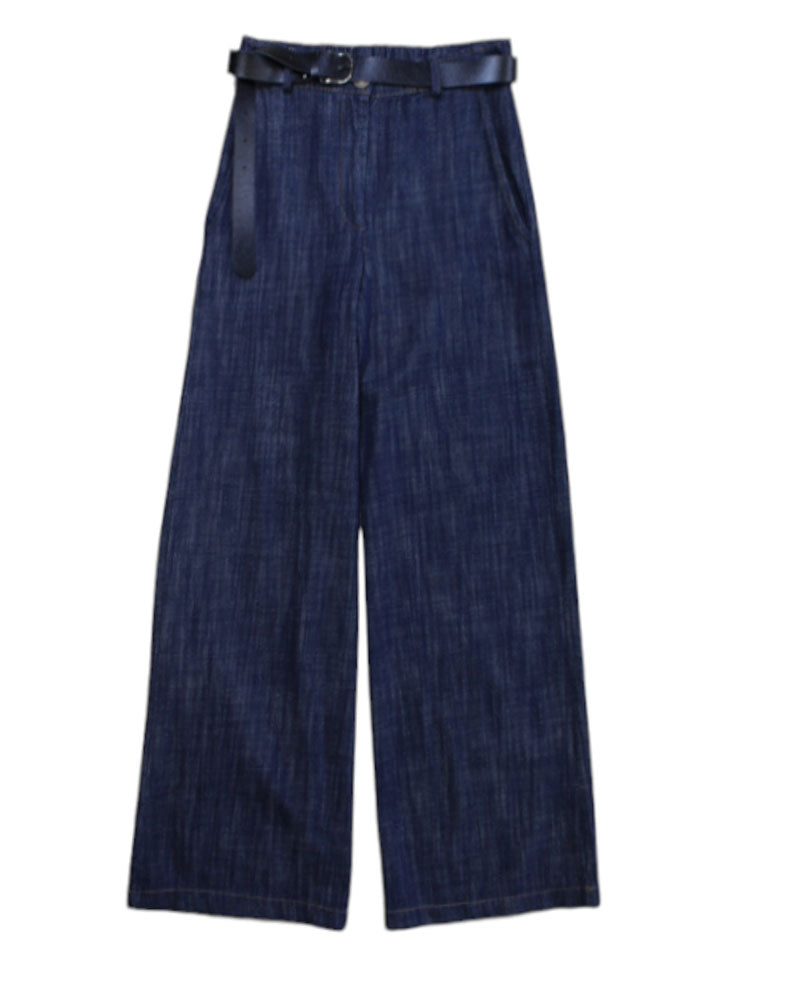 Jeans in lightweight fabric, palazzo style, American pocket, applied belt.