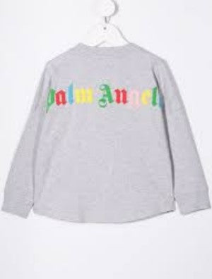 Crew neck T-shirt in cotton jersey with long sleeves, multicolour print on the neck, rubberised logo print on the back.