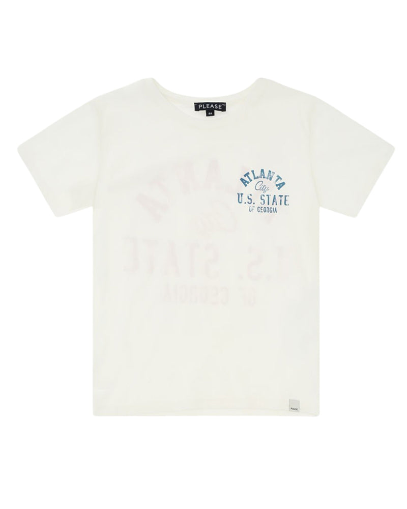 T-shirt girocollo con maniche corte, stampa in contrasto sul davanti.