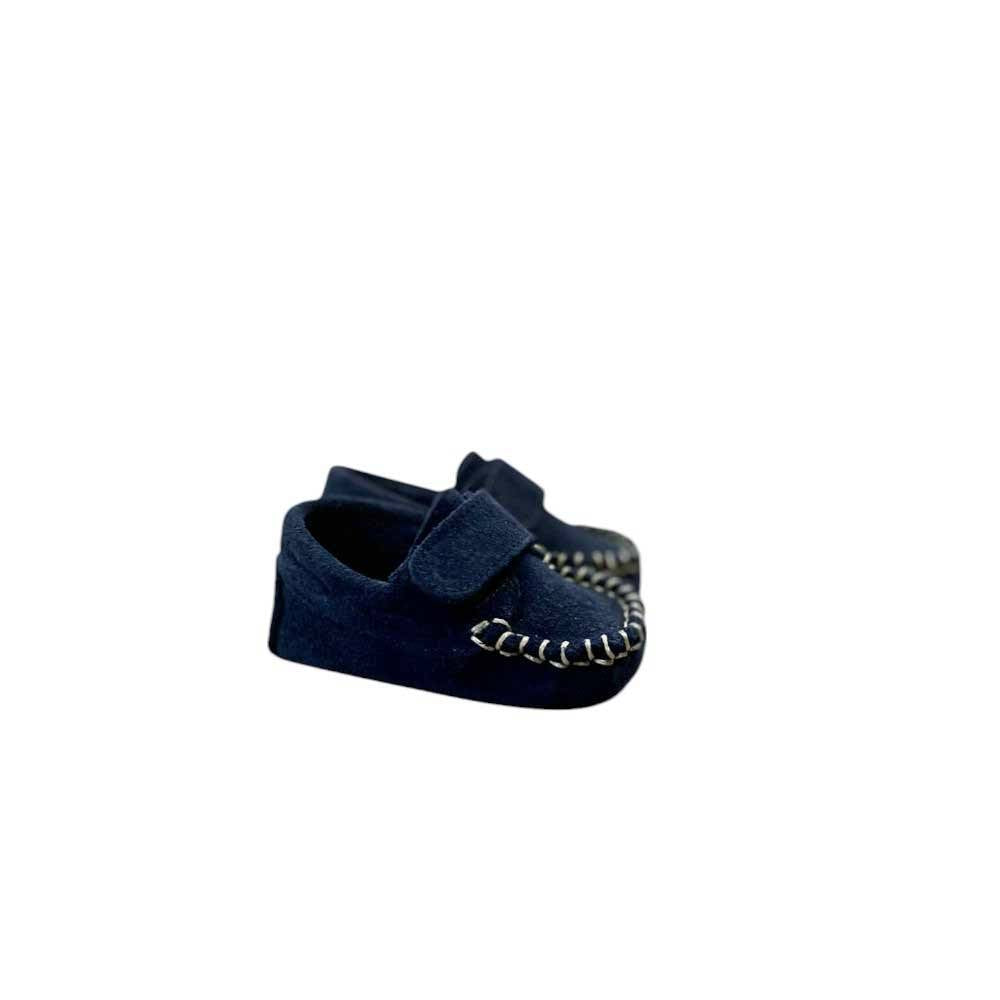 mocassini neonato in camoscio chiusura con velcro impuntura colore a contrasto