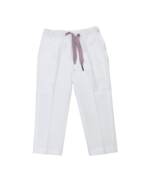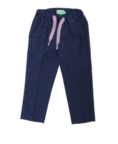 Trousers with elastic and drawstring waist, American pockets, pocket on the back.