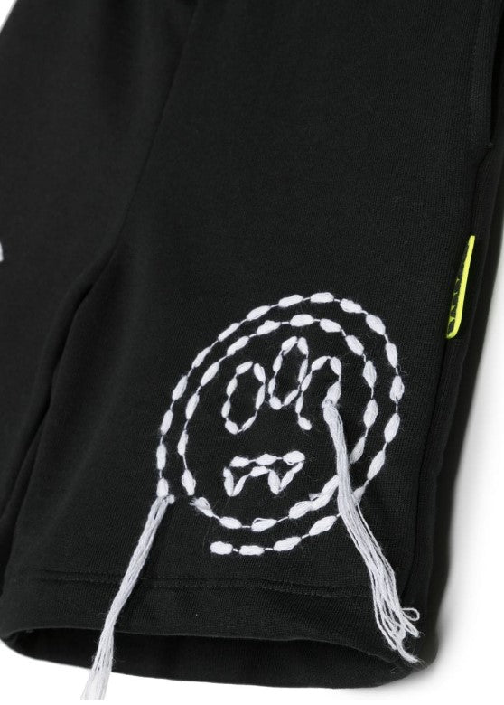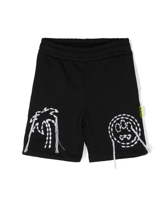 Bermuda shorts with elastic waist, welt pocket, embroidered logo on the front, print on the back.