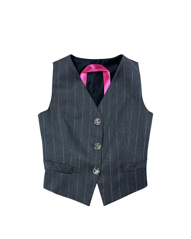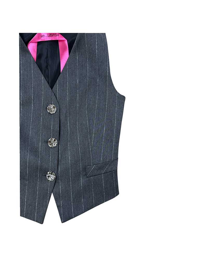 The So...Lavish G4007 Pinstripe Vest is a stylish and trendy choice to complete your look. With metal buttons and faux pockets on the front, it is perfect for any occasion. The polyester and elastane composition ensures fit and durability. Don't miss the opportunity to add this piece to your collection.