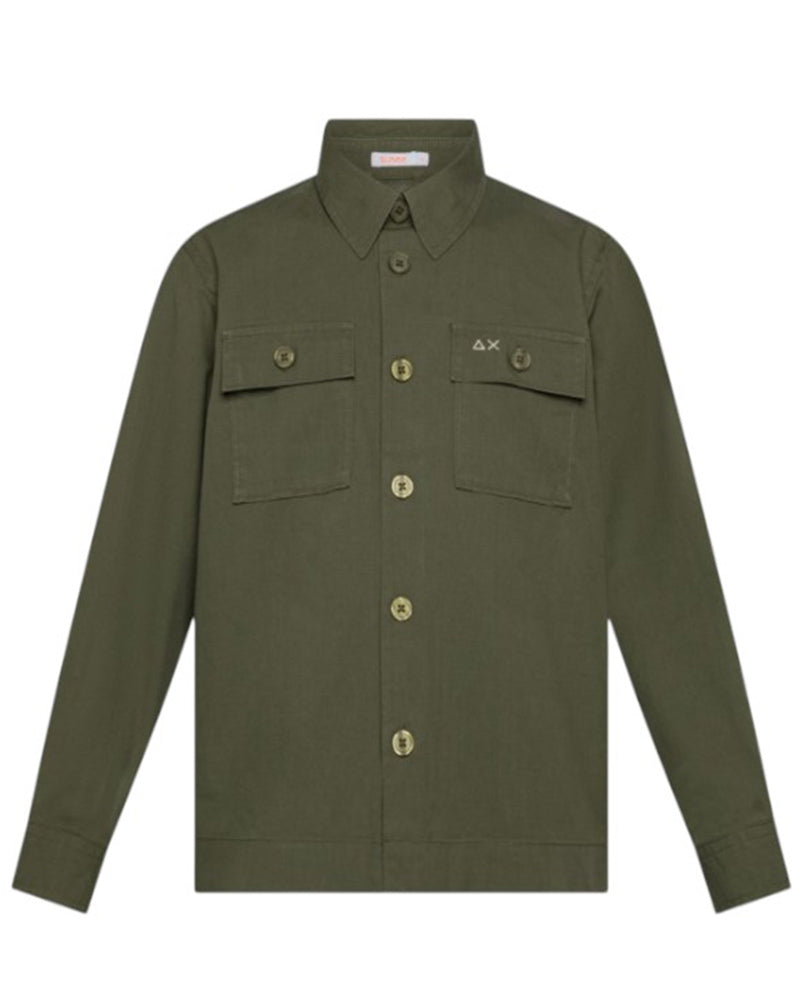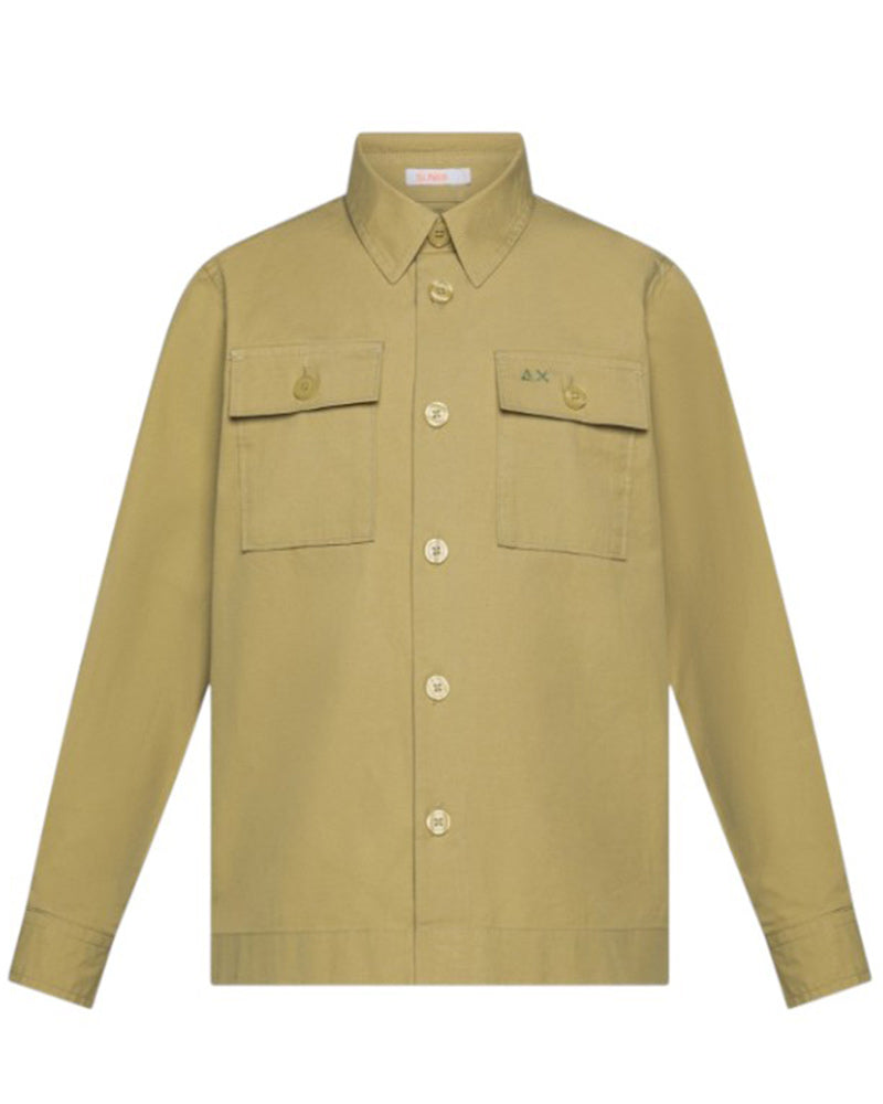 Camicia realizzata in cotone da bambino. Presenta colletto a punta, chiusura frontale con bottoni, maniche lunghe con bottoni ai polsi. È decorata con due tasche applicate sul petto e logo ricamato.