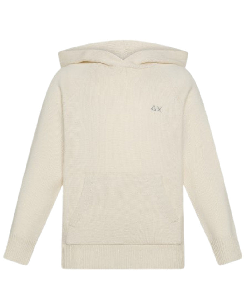 Wool and cashmere blend sweater, hood, long raglan sleeves, ribbed edges, kangaroo pockets, SUN68 logo embroidered on the chest.