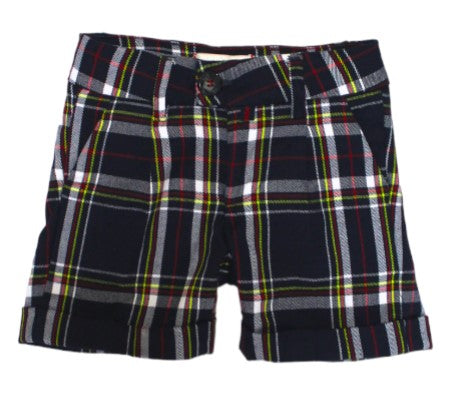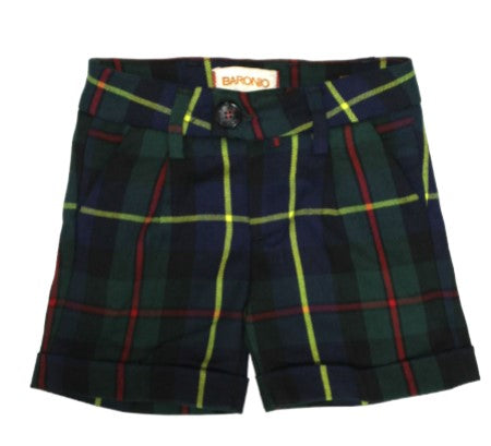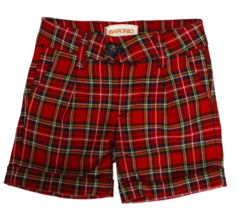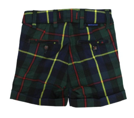 Children's Bermuda shorts in checked pattern, button and zip fastening.