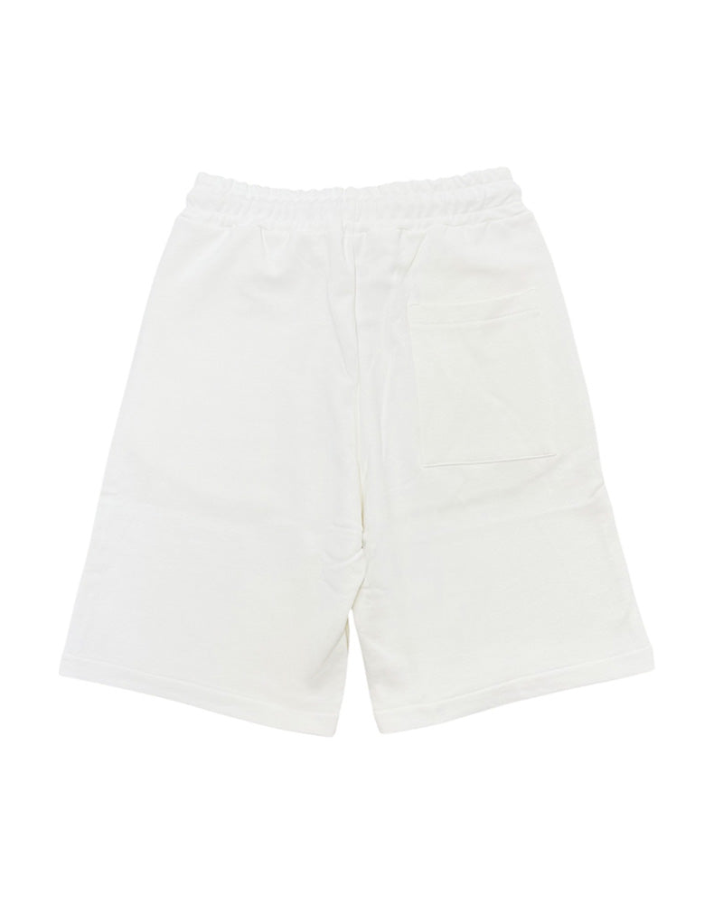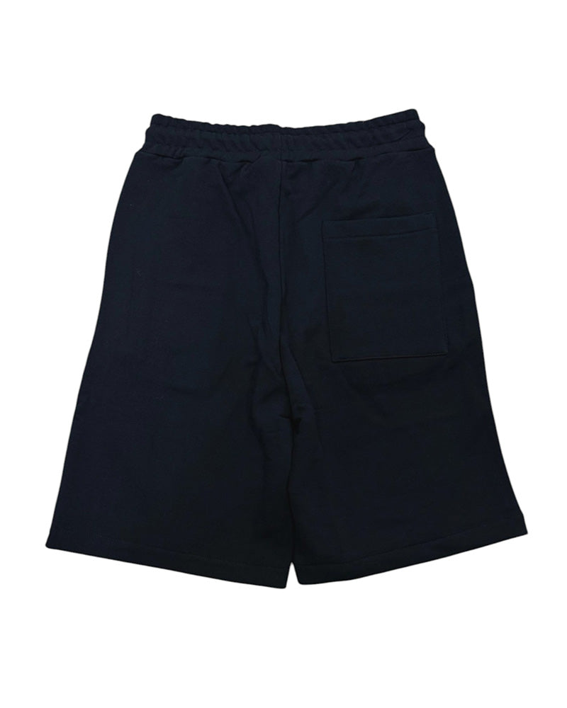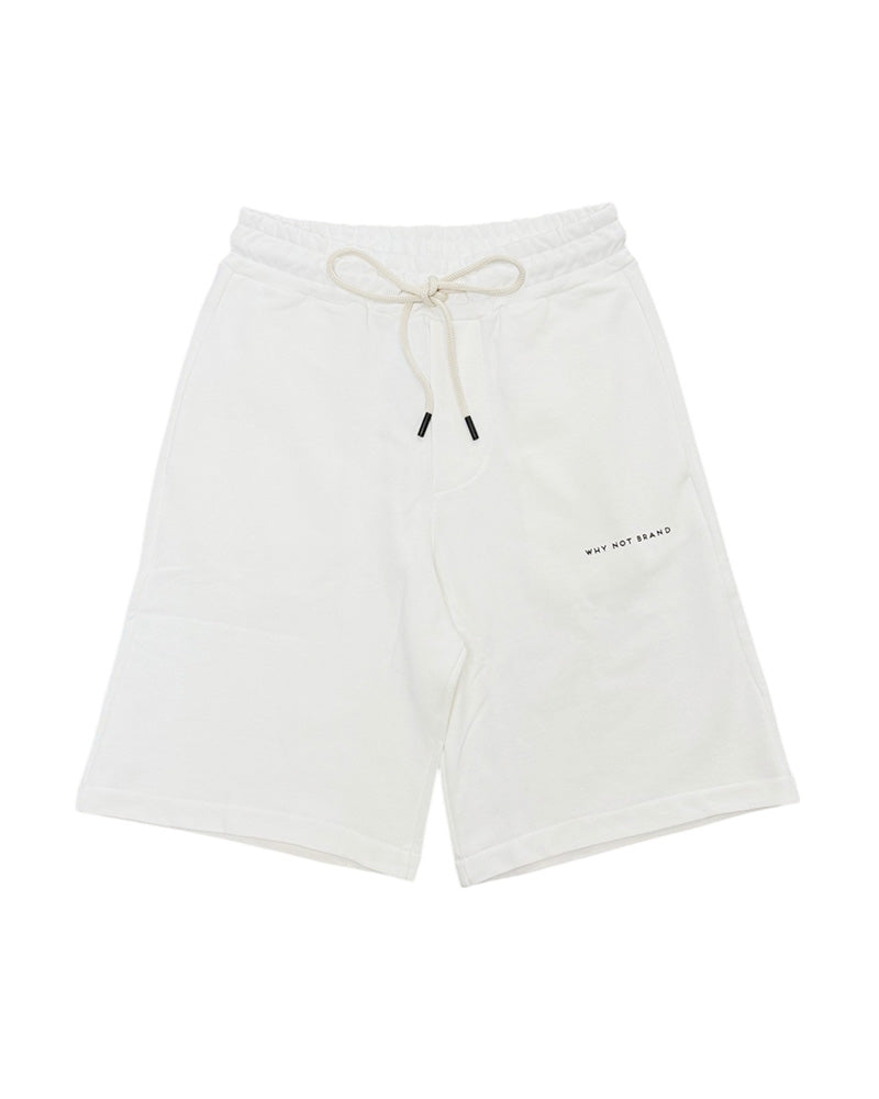 Bermuda realizzato in felpa di cotone, vita elasticizzata con coulisse, tasche laterali, logo stampato.