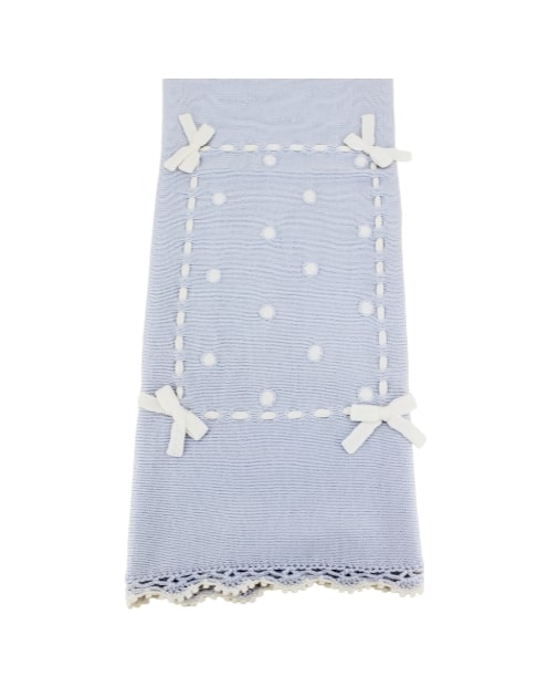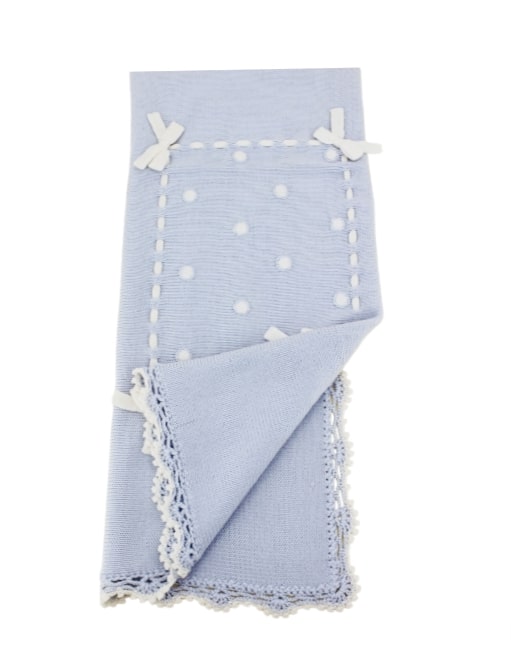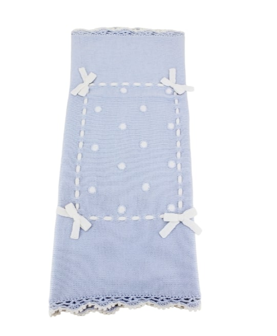 Copertina Bimbi Chic neonato cielo con fiocchetti e bordura panna.