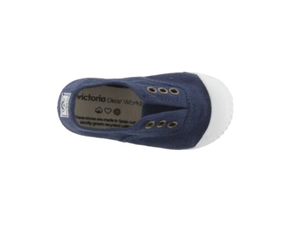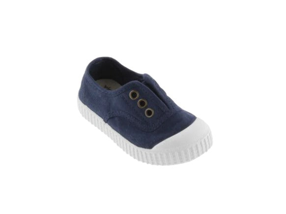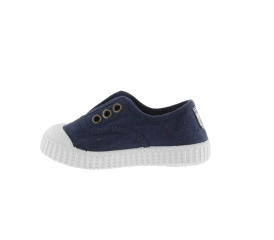 sneakers in tela senza lacci per bambini sono realizzate in cotone organico coltivato, filato e tessuto in Spagna. Sono dotate di una suola in gomma naturale vulcanizzata che garantisce durata e flessibilità con rinforzo in gomma nella punta che aggiunge resistenza. Elastico centrale sul collo