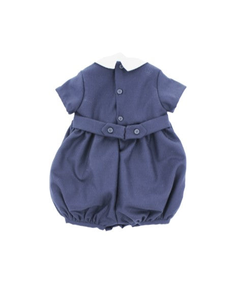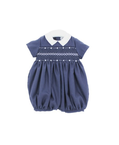 Pagliaccetto Kidiwi con ricami in punto smok sul davanti.