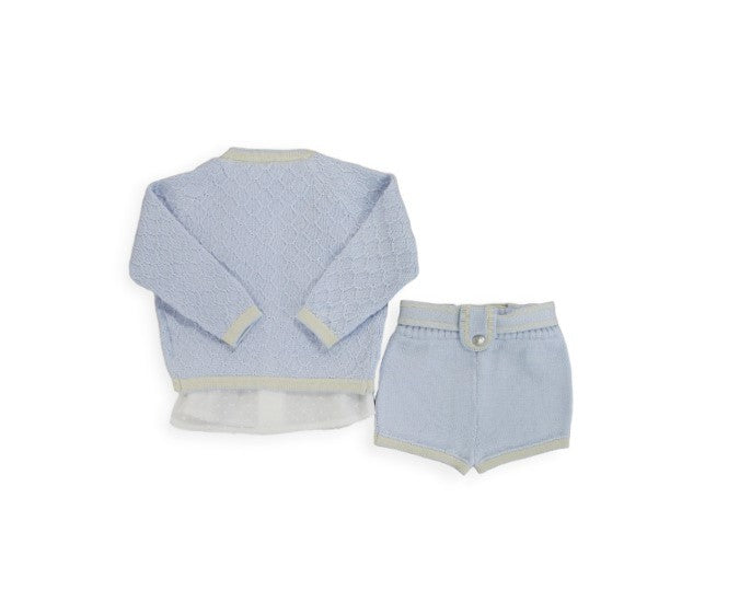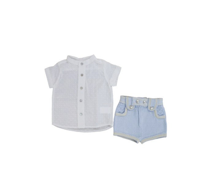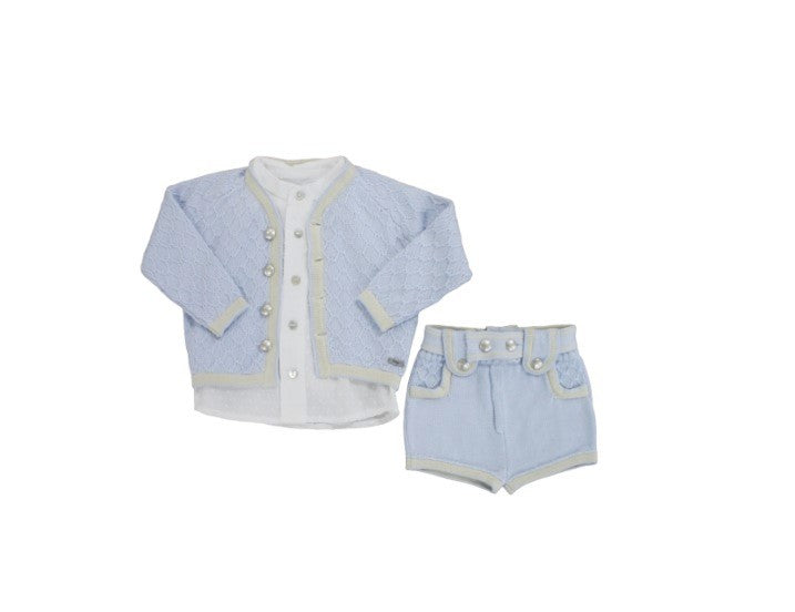 Completo giacchina con camicia e pantaloncino bottoni in metallo e bordini a contrasto
