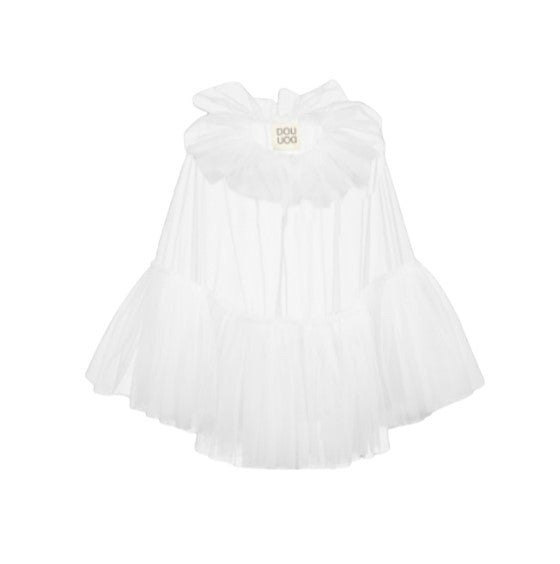 Mantella per bambina in tulle con balze e chiusura anteriore con bottoncino. Perfetta per le stagioni più fredde, mantiene la tua bambina al caldo e al tempo stesso le dona un tocco di eleganza grazie al suo design unico.