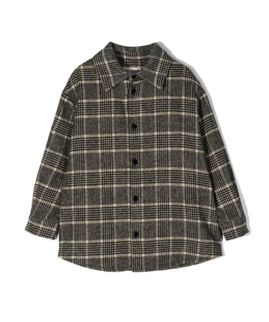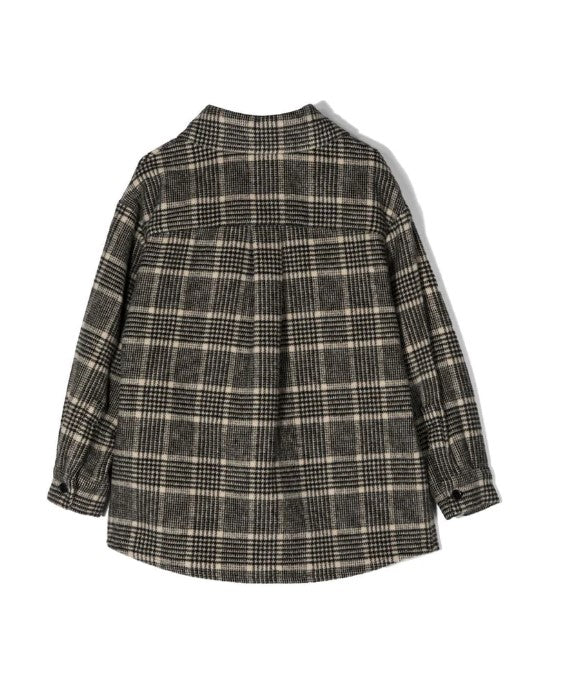 Camcia in lanella, fantasia a quadri, chisura con bottoni.
